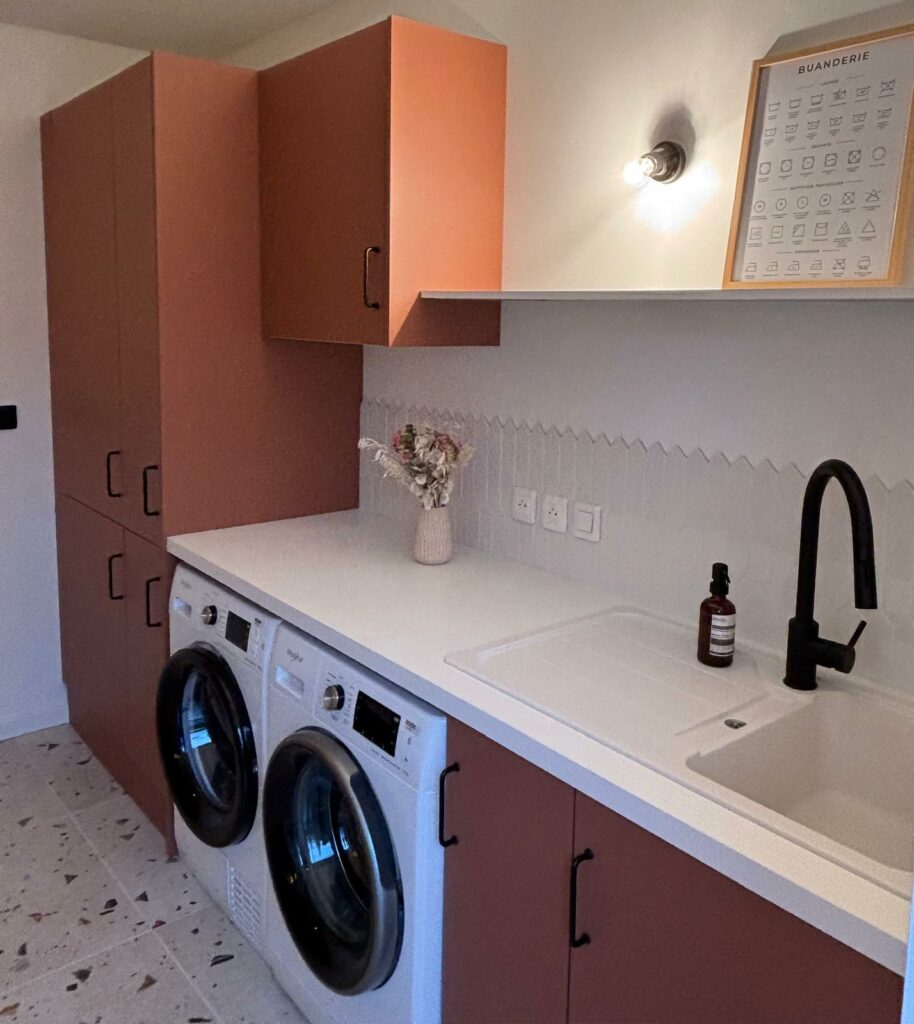 L’espace est désormais totalement méconnaissable et est passé d’une zone technique négligée à une véritable pièce à vivre pratique et inspirante.